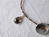 のある石をあわせました。留め具は錫をハンマーワークでボタンにしています。