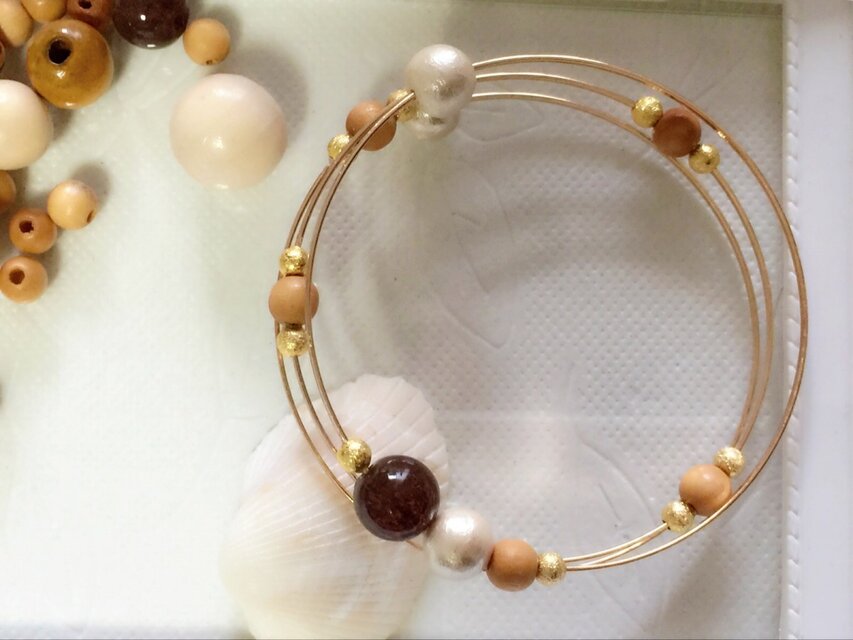 コットンパールとウッドビーズの連ブレスレット★バングル
