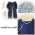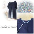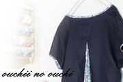 秋にピッタリなしっとりリネンネイビーとリバティタナローン可愛い人気柄CHECK&STRIPE 限定Fergusファーガスブルーでドルマンプルオーバーブラウスをおつくりしました。