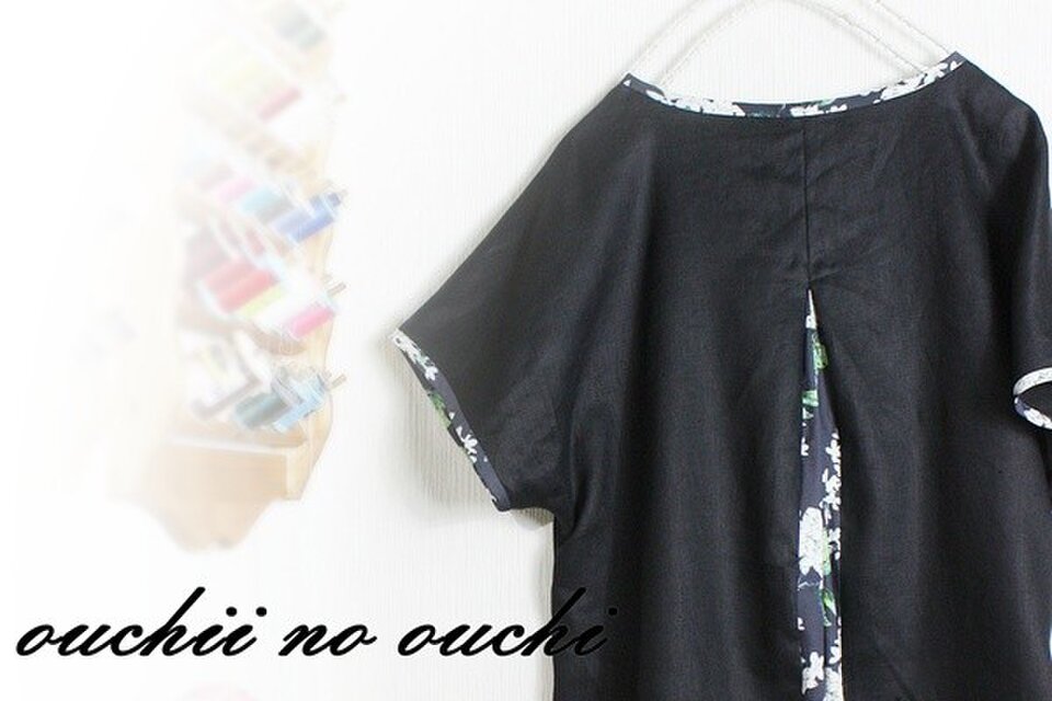 秋にピッタリなしっとりリネン ブラックとリバティの大人気柄Archive Lilac アーカイブ・ライラックでドルマンプルオーバーブラウスをおつくりしました。