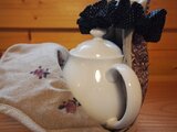 ◎ポットを外さずにお茶を注ぐことができるように考えたオリジナルデザインのティーポットカバーです