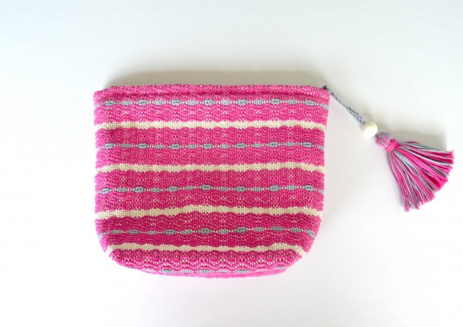伝統的な柄を元に、オリジナルな要素を加え織ったポーチです。