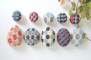 ウールの糸をめがね織という手法で織りブローチにしました。