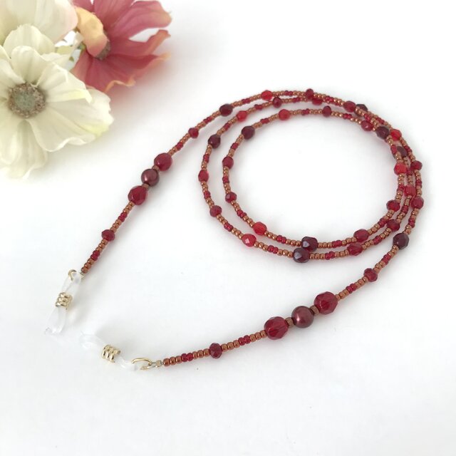 #メガネチェーン #グラスコード #眼鏡チェーン #メガネコード #めがね #ビーズアクセサリー #母の日 #グラデーション #チェコガラス #赤 #アンティーク #クラシカル #レッド #誕生日 #還暦 #メガネストラップ #エスニック #アジア #クリスマス