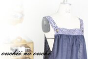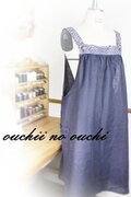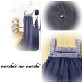 秋にピッタリなしっとりリネン ネイビーとリバティの大人気柄 Puff(パフ)グレイッシュピンクでタブリエオーバードレスをおつくりしました。