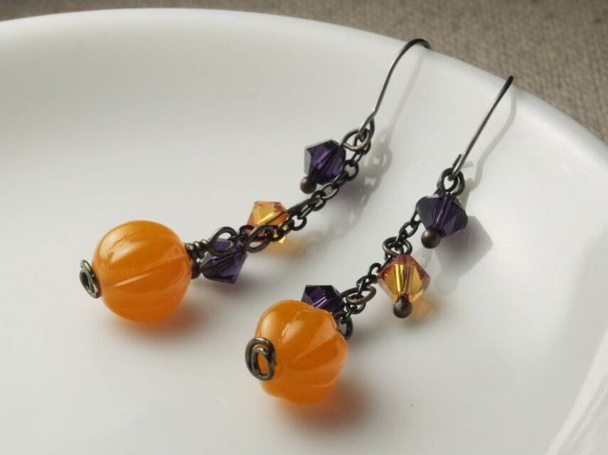チェコ・メロンビーズとスワロのピアス ハロウィン