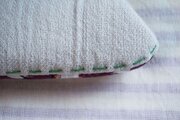 表の布の片面が文鳥柄(こちらは桜文鳥の、白羽が後頭部にあるゴマ塩文鳥となっています)で、裏面はソフトデニム生地にステッチを入れてあります。