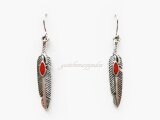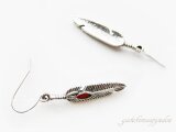 エスニックな雰囲気の赤いワンポイントのあるフェザー(羽)モチーフのフックピアスです。