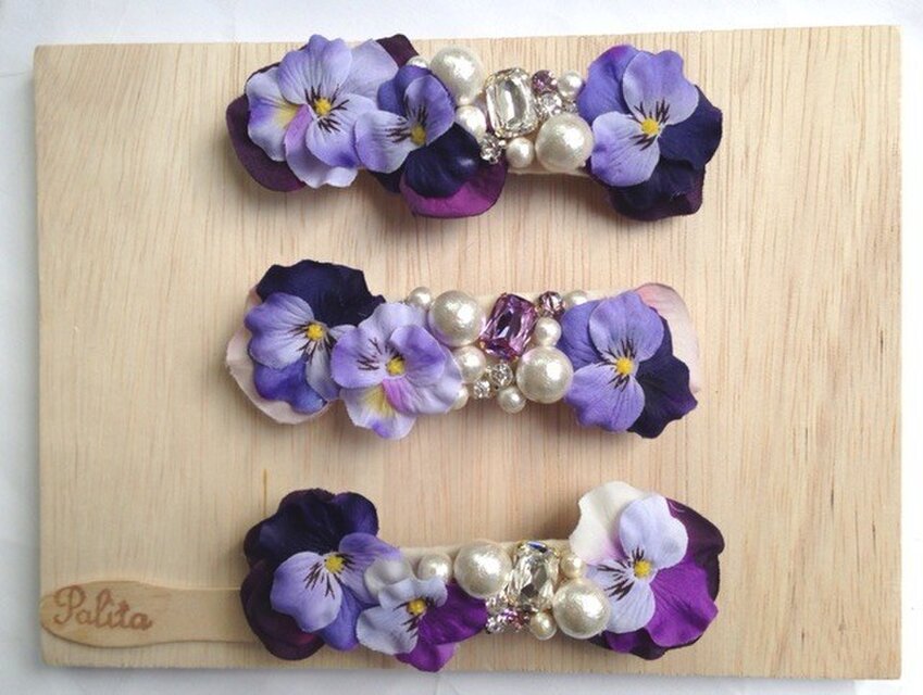 アーティシャルフラワーとビジューで作りました。