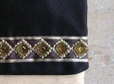 ビジュー付のボーダーは、手仕事でつけて行くので手間がかかり、現在ボーダー専門店にも既製品は見かけません。現在のものは熱でくっつけたタイプ、ちゃんと糸で括りつけたボーダーは、ますます貴重品になりそうです。