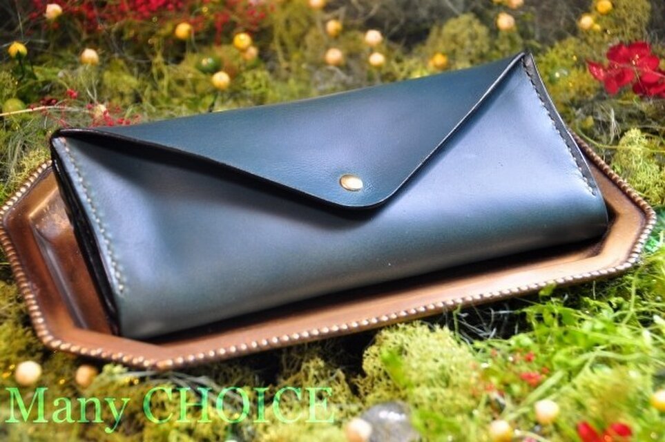 スムースプルアップレザー・長財布2(ブルーグリーン)