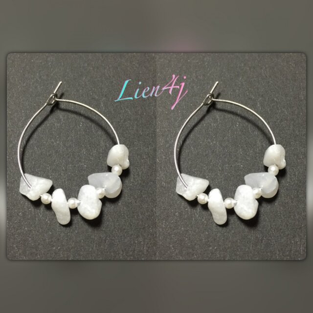 白翡翠とパールビーズでホワイト色のシンプルなピアスを作りました。