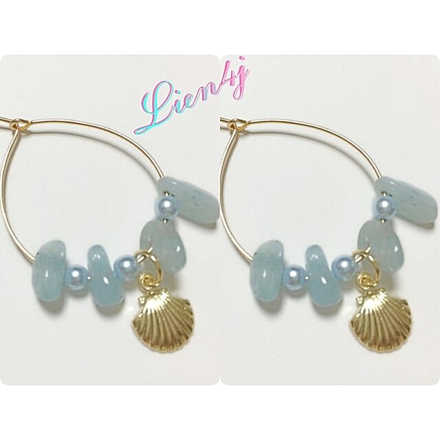 恋愛成就☆アクアマリンと貝殻の可愛らしいピアス