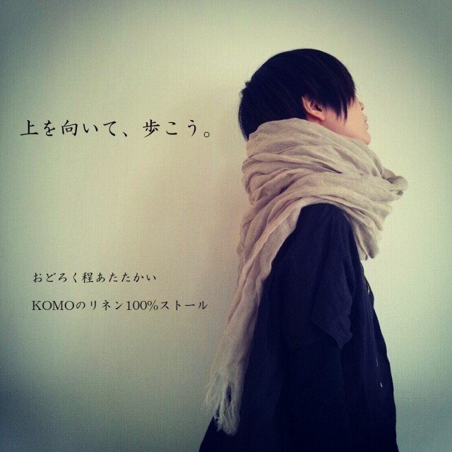 KOMOさま 本日、無事受け取りました。 手にとってみたら、実物は期待以上の素敵なストールです。やさしい肌触りと安心感に包まれたようで、心まで温かくなります。使うほどになじんでくるとのこと!!楽しみに愛用させていただきます。手書きのメッセージにも感激です。 またのご縁がありますように。 ありがとうございました。