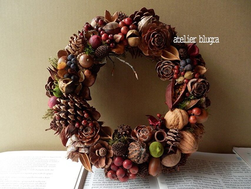 八ヶ岳はそろそろこんなリースが似合う季節となりました。豊かな自然の織りなす20種類ほどの、様々な木の実の表情をお楽しみください。