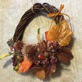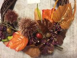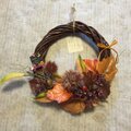こちらはフェイクの栗やどんぐり、秋色の葉を使い制作いたしました秋用リースです。全てフェイク、アートフラワーで出来ておりますので、屋外でも飾っていただけます。
