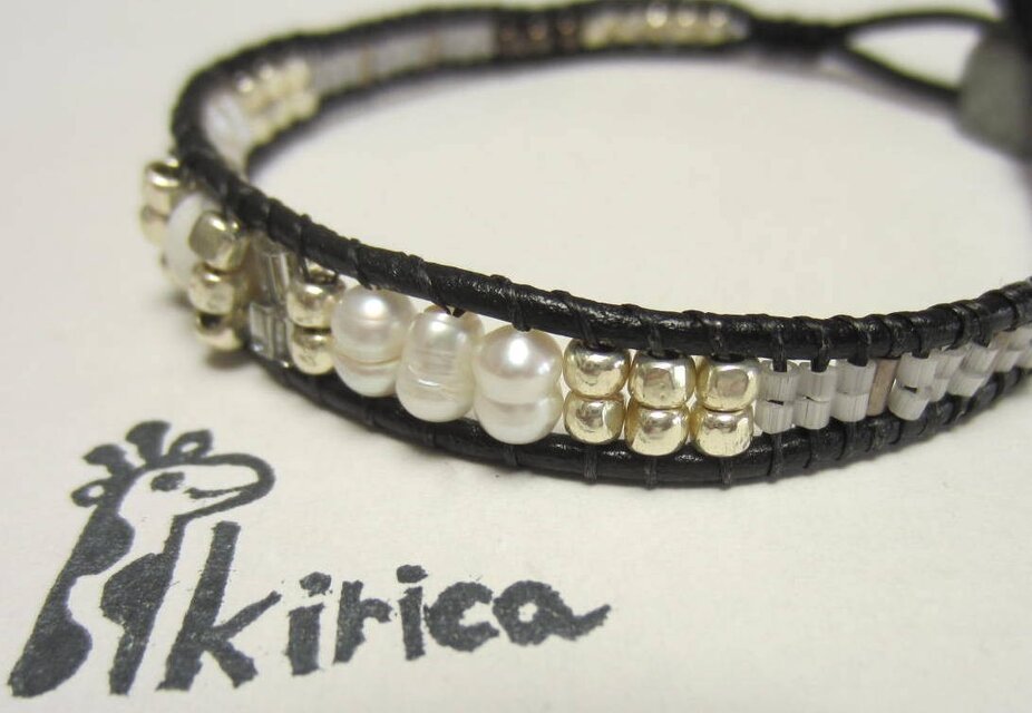 黒の1.5mmの革紐にあわせたのは、白とグレーの配色。