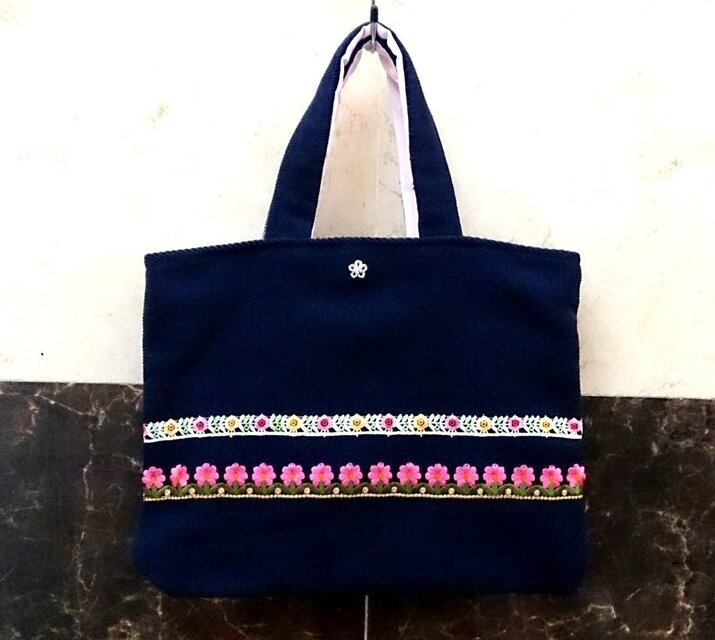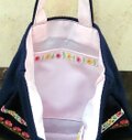★濃紺ヘリンボーンのマドモアゼルトート★小花&レース