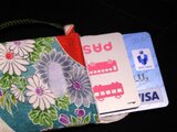 絹のICカード入れやパスケースとして 緑色ストラップ