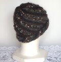 ゴム編みのような伸縮性のある編み地ですので、頭を締め付けることなく、すっぽり包んでほかほか温か。