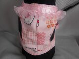 表地は綿100%裏地は肌にやさしいガーゼ地を用いています。背中のマジックテープで止めるようにしていますので簡単に脱ぎ着させることができます。散歩や病院での診察の時や災害時にはお役に立てるかと思います。首が絞まったり頭が抜ける事もありません。バックルで止めてリードに繋ぐのでリードが外れる事もありません。洗濯は金具が付いていますので手洗いでお願いします。