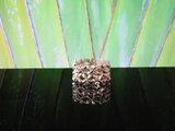 20個のプルメリアモチーフが2列に並んで指を1周し、其々の葉の部分があらゆる方向に対して反射して輝きます。