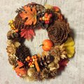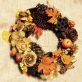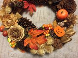 こちらはピスタチオの殻で出来たお花とフェイクのパンプキン、シダーローズやたくさんの木の実を使い制作いたしました。