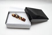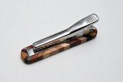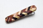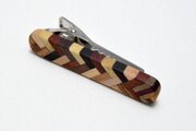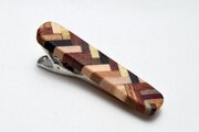 手作りの木製タイピンです。クロムメッキの金具をベースに作りました。