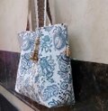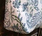 生地は、ファブ・インディアのインテリアコーナーで見つけたコットン100%の美しい生地です。単色ではなく、ブルーとグリーンで奥行きのある絵柄です。