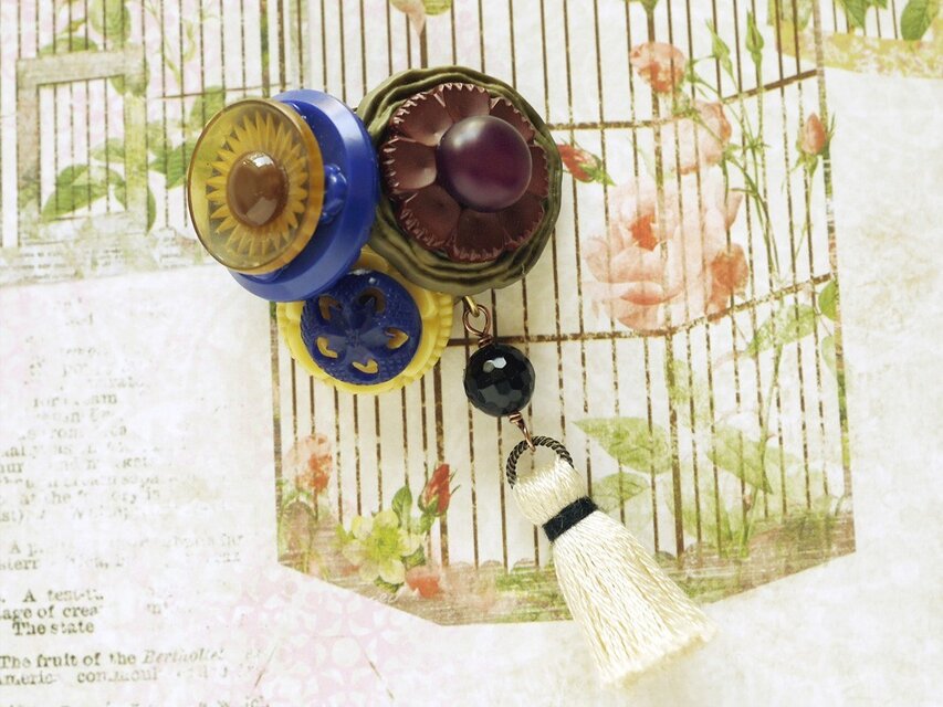 アンティーク、現代ボタンを組み合わせたブローチです。