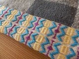あざやかな色の糸を使っていますが、グレーの大きなチェックの