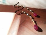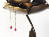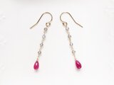 つるんとしたドロップカットのルビーは小振りながらも、赤い色味がとてもシックです。