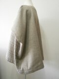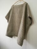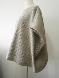 前見頃にチェック・背に同色系の織りに雰囲気の有る生地を使用のゆるポンチョ風プルオーバーです。