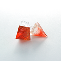 レッドとラメを閉じ込めたクリスタルレジンのピラミッド型のピアスです。