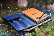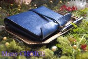 イタリアンオイルレザーアリゾナ・2つ折りロディア・ペンケース(アルノブルー)