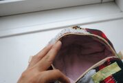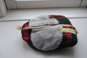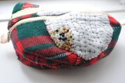 可愛い赤のチェックの生地に薄いグレーのニット地をあてて。
