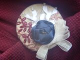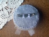 麻リネンのリボン刺繍ブローチB