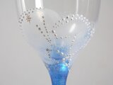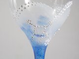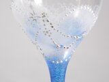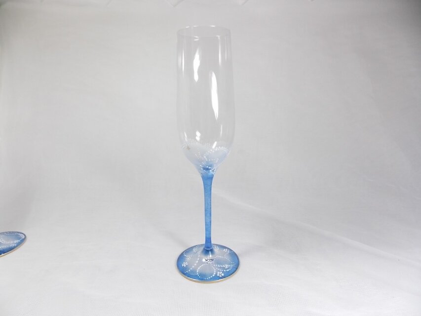 ガラスのシャンパングラスに宇宙を描き土の星座(牡牛・おとめ・やぎ)を手描き致しました。青がきれいです。手で持った時のプツプツ感が印象的です。