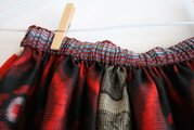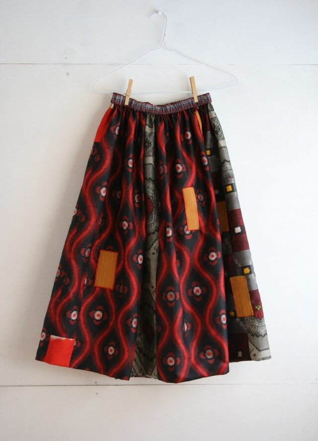 昭和に作られたと思われる着物やコート生地でボリュームのあるギャザーゴムスカートを作りました。