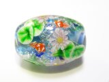 とんぼ玉のサイズは30mm×21mm、紐通し穴は直径4mmです。