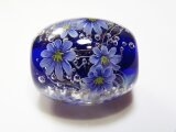 ネイビーの地に、ガラスで作ったブルーデイジーの花を咲かせました。