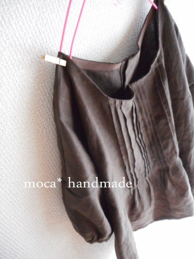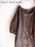 【受注製作】W50前ピンタックリネンチュニックブラウス★濃茶