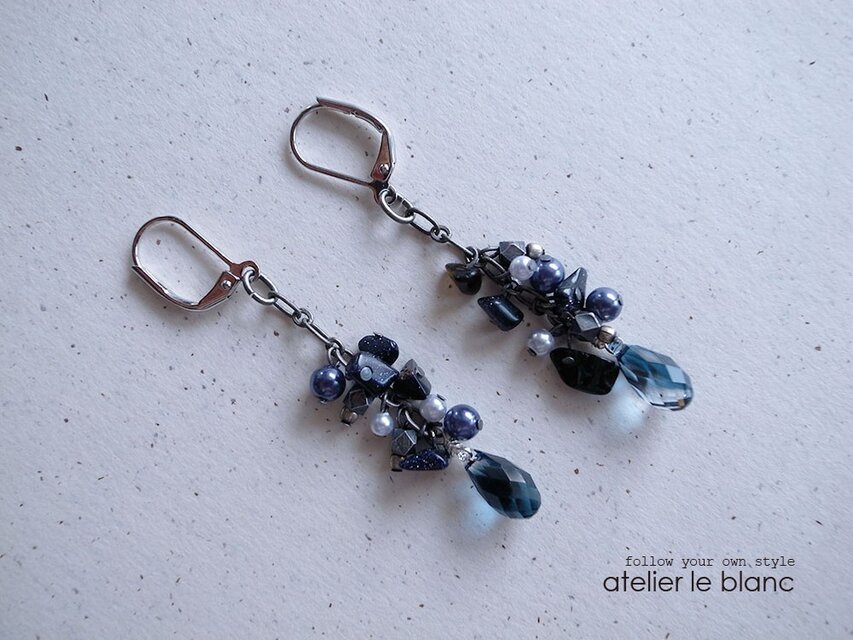 素材:スワロフスキー、ブルーサンド、メタルチェーン、メタルビーズ、パールビーズ等