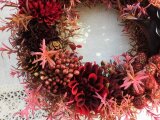 とても秋めいたリースが届きました。ドライフラワーだと翌年は使えませんが、アーティシャルフラワーなので数年は飾れるでしょう。とても嬉しいです。雪花さん、ありがとうございました。