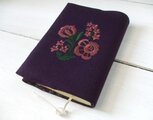 紫のウール生地に花刺繍をした文庫本サイズのブックカバーです。