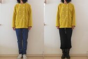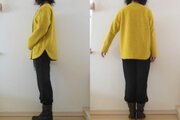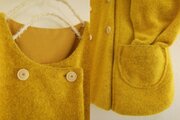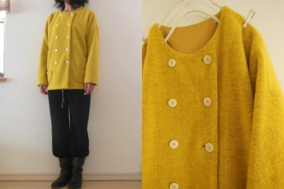 前あき見返し~背当て・裾見返しは、マスタードイエローのコットン天竺を使用。