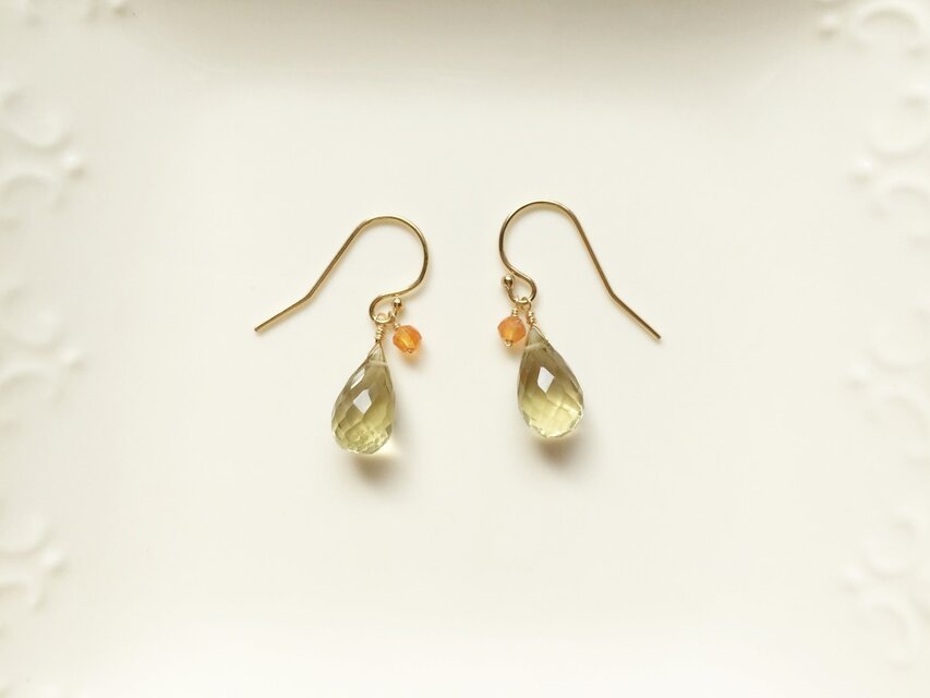 素 材:オリーブクォーツ(ドロップカット 12×7mm)