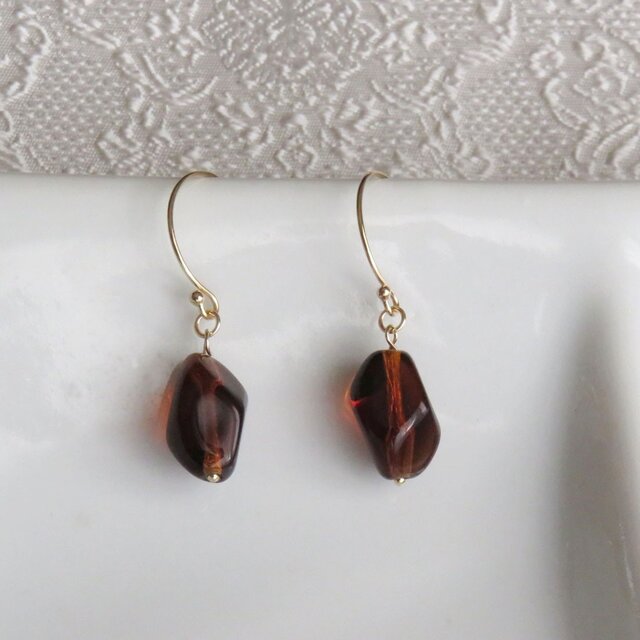 天然こはく【琥珀】ピアス K14GF ME1015-003