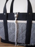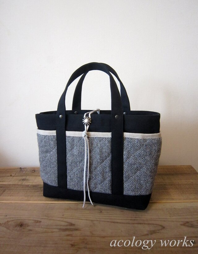 「wool tote」S ブラック×ヘリンボーン(チャコール)