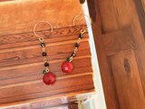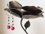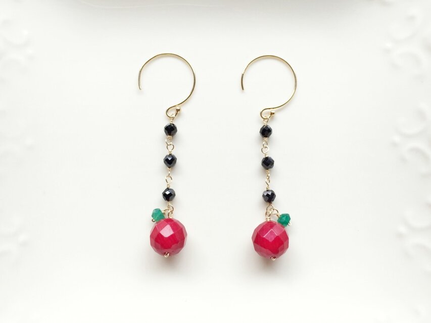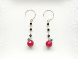 赤珊瑚とグリーンオニキスの林檎ピアス